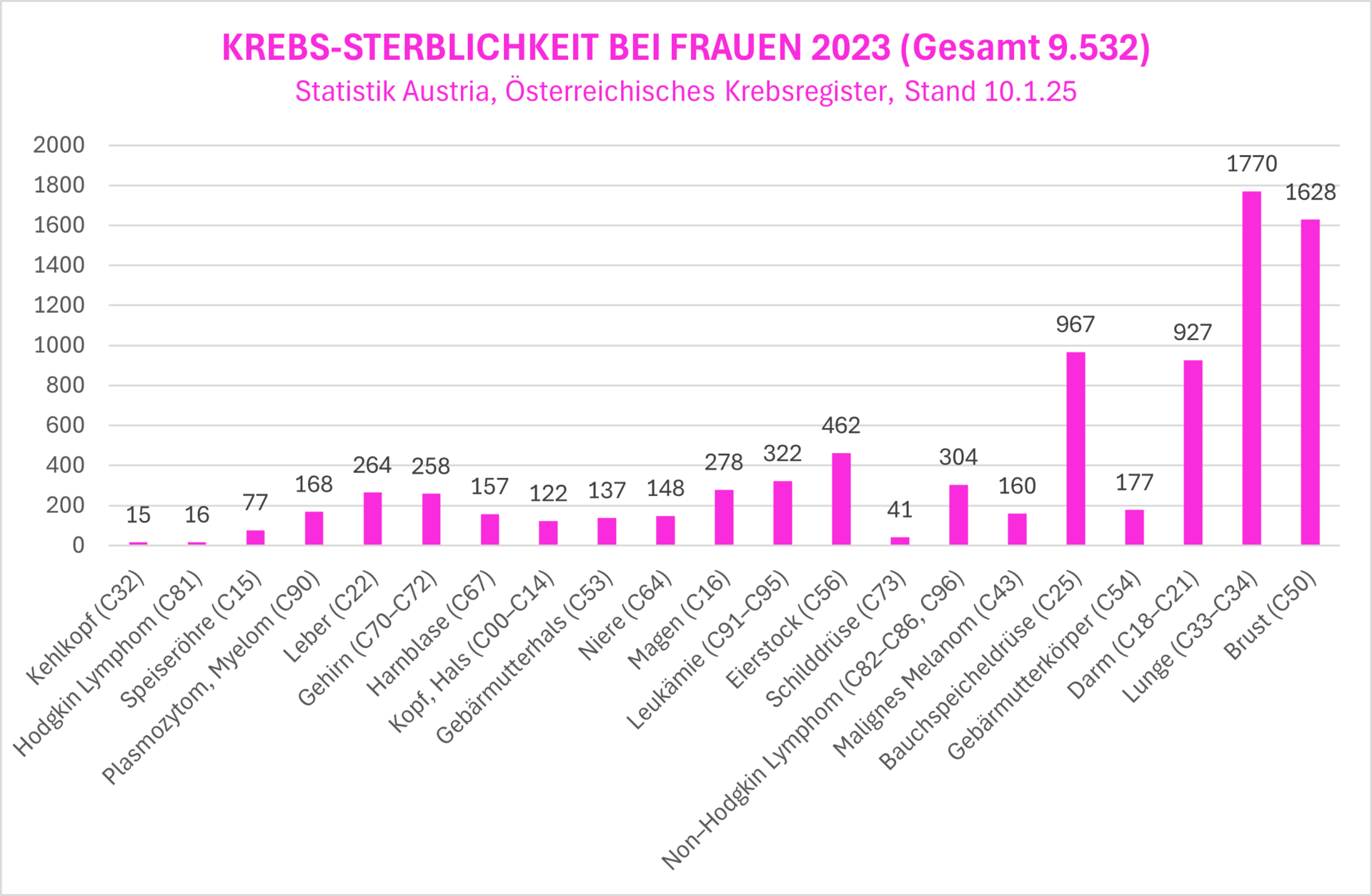 Statistik Austria, Österreichisches Krebsregister, Stand 10.1.2025:
