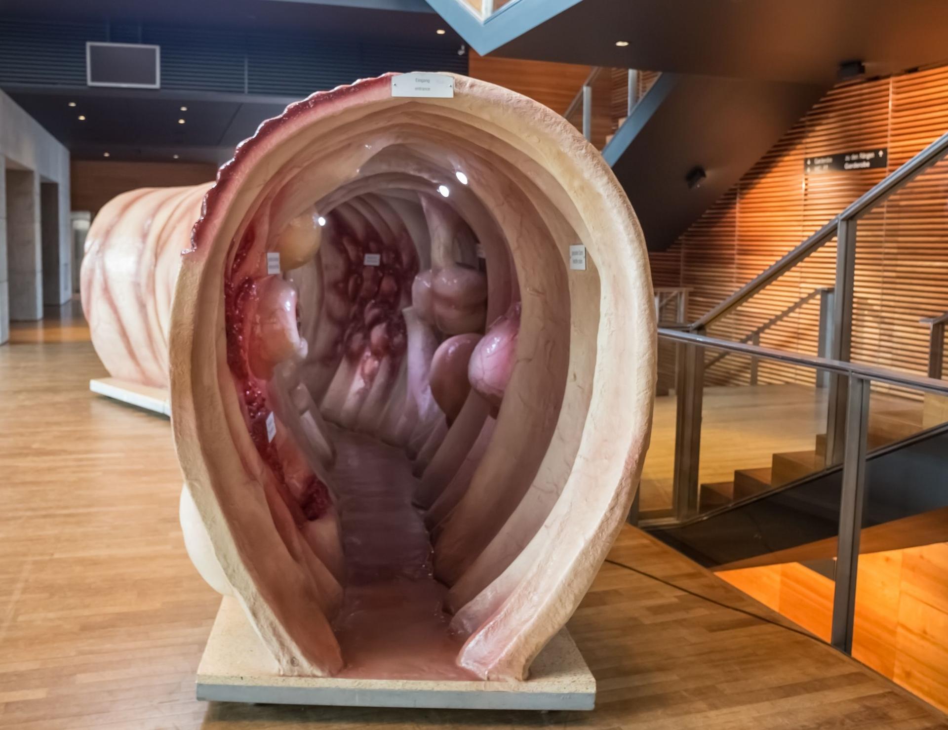 Anhand eines begehbaren Darmmodells können Sie den anatomischen Aufbau des Organs sowie chronische Darmerkrankungen in verschiedenen Stadien besichtigen.