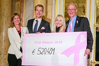 Den Abschluss bildete die symbolische Scheckübergabe des vorläufigen Spendenergebnisses in der Höhe von Euro 520.401 der Pink Ribbon Aktion 2018 durch Estée Lauder Geschäftsführer Siegfried Maurer an Krebshilfe-Präsident Paul Sevelda.