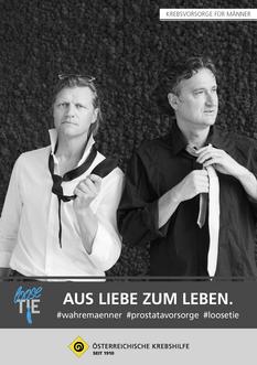 Das beim Shooting entstandene Loose Tie-Portrait mit Gery Seidl und Guido Tartarotti ist auch das Titelbild der neuen Broschüre „Aus Liebe zum Leben. Krebsvorsorge für Männer“, die bei den Urologen, der Krebshilfe und in allen Apotheken aufliegt.
