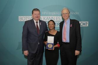 Als Höhepunkt der Veranstaltung erhielt der Ehrengast aus Botswana, Frau Prof. Dr. Doreen Ramogola-Masire den AGO Humanity-Award. Als enge Beraterin des Gesundheitsministers von Botswana ist es ihr gelungen, eine nahezu 100%ige HPV-Durchimpfungsrate in ihrem Land zu erreichen. Für diese herausragende Leistung im Kampf gegen HPV-assoziierte Krebserkrankungen erhielt Prof. Dr. Doreen RAMOGOLA-MASIRE im Rahmen der Enquete den Humanity Award der AGO.