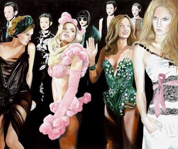 Die renommierte Galerie Suppan zeigt aktuell eine Reihe neuer Arbeiten von Attila Adorján – dem Shooting Star der ungarischen Künstlerszene. Darunter das Gemälde „The Girl with the Pink Ribbon“, das eine Szene mit neun Frauen darstellt, von denen eine das „Pink Ribbon“ trägt: in Anlehnung an die Statistik, dass eine von neun Frauen an Brustkrebs erkrankt.