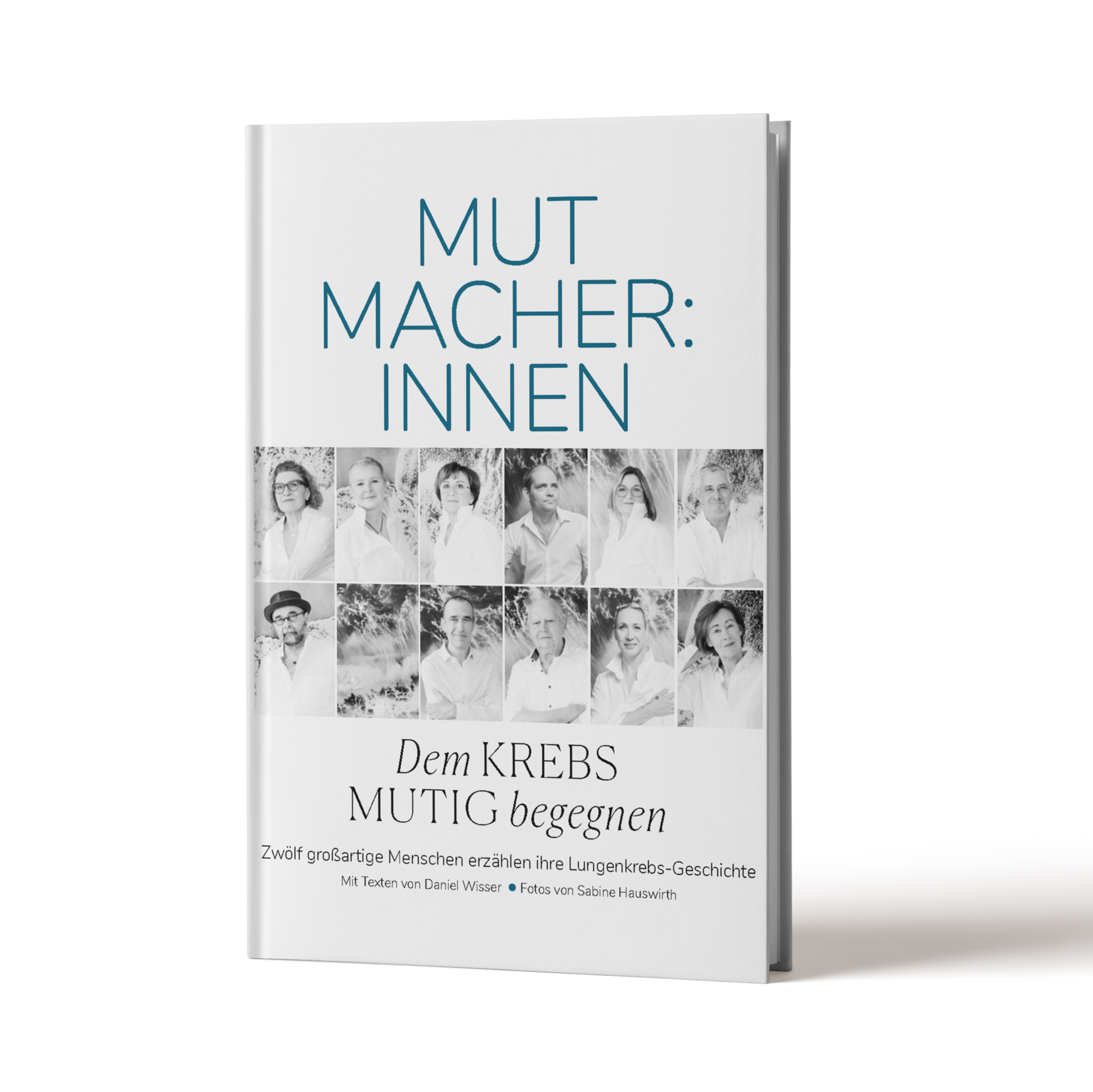 12 großartige Frauen und Männer erzählen dem bekannten Schriftsteller Daniel Wisser ihre LUNGENKREBS-Geschichte, um anderen Betroffenen MUT zu machen. Starfotografin Sabine Hauswirth setzt die Teilnehmer:innen mit eindrucksvollen s/w Portraits in Szene.