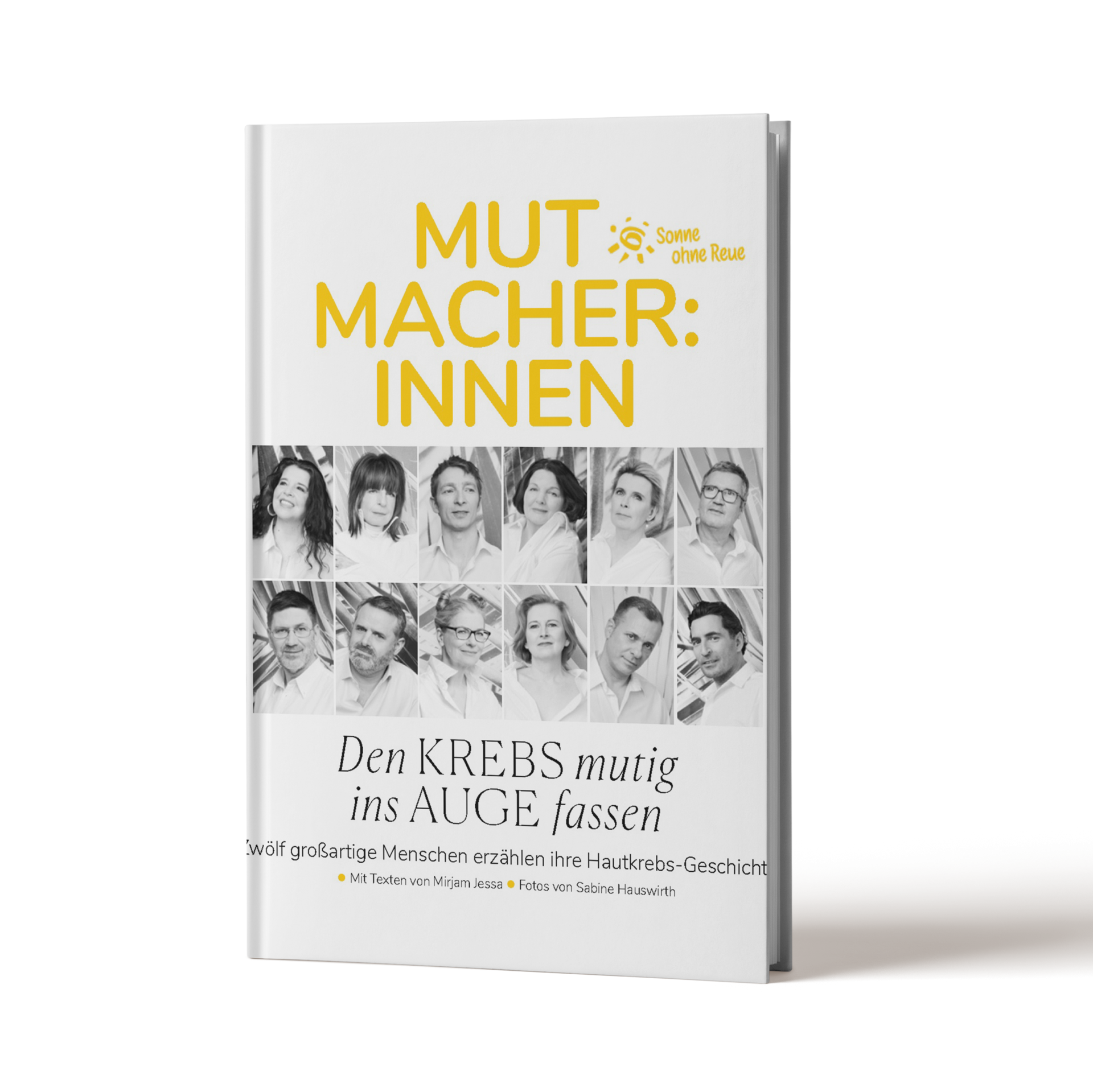 Zum 35. Jubiläum von "Sonne ohne Reue" erzählen 12 Hautkrebspatient:innen der Autorin Mirjam Jessa ihre Geschichten und ihre Erfahrungen mit der Erkrankung. Portraitiert werden die Frauen und Männer von der Künstlerin und Starfotografin Sabine Hauswirth.